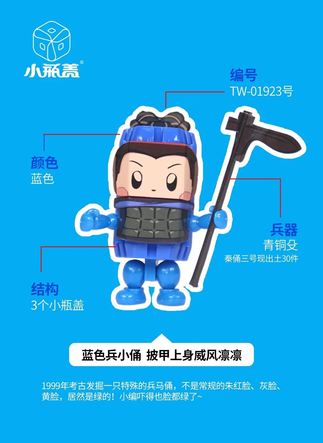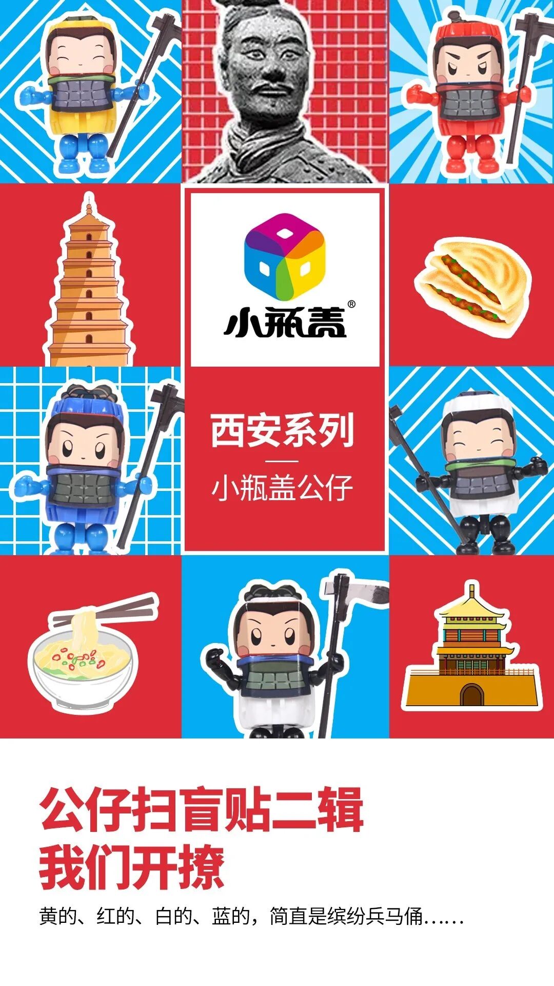 兵马俑公仔 The Terra Cotta Warriors 小瓶盖最盛产什么? 除了拼装小瓶盖当然是小瓶盖公仔 瓶盖界流传着一个传说…… 集齐所有小瓶盖公仔, 就可以找到男(女)朋友。 BUT,今天只来看一下西安兵小俑公仔~ 3个瓶盖的传奇