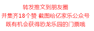 为了满足孩子的好奇心 可以让家长尽情的 带着孩子猎奇 亿家乐在父亲节这天 送出常州恐龙乐园的门票 让爸爸们可以 带着孩子在乐园里玩耍 探秘 拉近彼此之间的关系