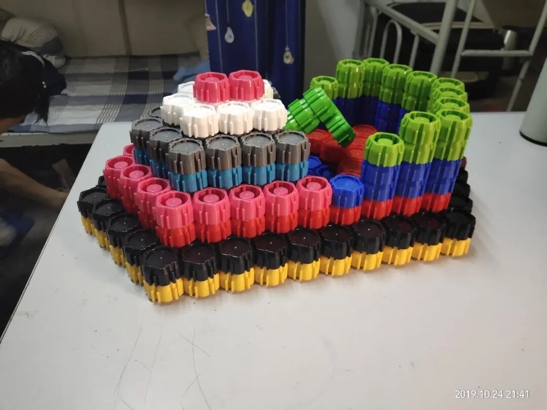 * 拥有8面拼装功能的小瓶盖 小瓶盖改良后,兼具了食品盖子功能与拼装功能:一方面,小瓶盖可以和食品包装创新结合,在功能环保的基础上增加产品的益智性;另一方面,与传统的拼装积木不同,小瓶盖配合系列配件,甚至可实现语音,发光,动态等功能。 * 小瓶盖拼装陀螺 * 小瓶盖益智教育AR片 从食品盖到玩具盖,虽然经历了一点改变,但产品的属性依然被保留下来,只是变得更有趣。 小小的瓶盖,装下了无限的创意:动漫系列、军事系列、没事系列、场景系列……只有你想不到的,没有小瓶盖拼不出的。小瓶盖有个超级玩家粉丝群,玩家们把用小瓶盖拼搭的作品发布在各大社交媒体平台,抖音、朋友圈、快手……都能随处可见玩家作品。 ![]() ![]() ![]() ![]() ![]() ![]() * 小瓶盖超级玩家作品 上图展示的只是玩家作品的冰山一角,关于小瓶盖玩家究竟拼出多少作品,没人知道。因为每一分玩家平台的数据都在更新,每一秒都有玩家上传自己的作品到后台,每一天小瓶盖的客服都在后台审核上百件作品。不过对于我们数字已经不那么重要了,最重要的是:这个小瓶盖已经不再是消费者眼里“包装上的垃圾”。